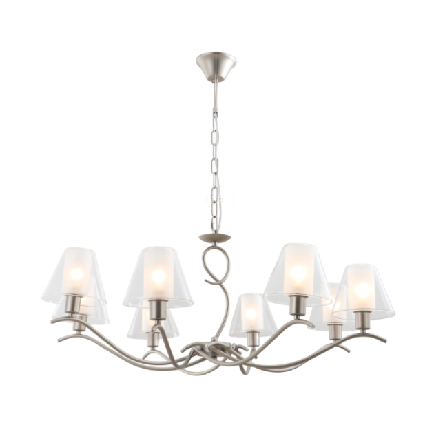 chandelier ແກ້ວຄູ່ທີ່ມີຂະຫນາດ 8 ເບົາ ຮົ່ມແກ້ວດ້ານນອກດ້ານນອກສ້າງຮູບ silhouette geometric ທີ່ໂດດເດັ່ນ, ໃນຂະນະທີ່ກະບອກສູບພາຍໃນທີ່ມີອາກາດຫນາວອ່ອນລົງເຮັດໃຫ້ຜົນຜະລິດແສງສະຫວ່າງອ່ອນໆ, ກໍາຈັດຄວາມມືດ. ສໍາເລັດຮູບ Nickel Sand Nickel ເພີ່ມເຕີມຕື່ມ A sheen ໂລຫະທີ່ມີສຽງ, ປະກອບທັງລະບົບສີທີ່ເປັນກາງແລະກ້າຫານ. ເສັ້ນໂຄ້ງທີ່ອ່ອນໂຍນໃນແຂນທີ່ແຕກແຫນ້ນເພີ່ມທະວີການໄຫລຂອງສາຍຕາ, ເຮັດໃຫ້ມັນເປັນຈຸດສຸມໃນຄວາມສະຫນິດສະຫນົມ.