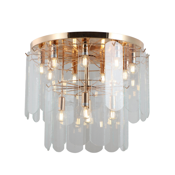 ກະດານແກ້ວທີ່ມີຄວາມໂປ່ງໃສສູງຮັບປະກັນການສົ່ງໄຟຟ້າທີ່ດີເລີດ. ໃນເວລາທີ່ແສງສະຫວ່າງຜ່ານໄປທົ່ວແກ້ວ, ມັນສະແດງຜົນກະທົບທີ່ອ່ອນແລະເປັນເອກະພາບ, ເຊິ່ງມັນຍັງບໍ່ສົດໃສເທື່ອ. ການຕິດຕັ້ງປະເທດຈີນຜູ້ຜະລິດ Luxury Luxury ເກີບສອງຊັ້ນຄໍາ Flush Mount Chandelier ແມ່ນງ່າຍດາຍແລະວ່ອງໄວແລະຮັກສາແມ່ນສະດວກ. ວັດສະດຸແກ້ວແມ່ນງ່າຍຕໍ່ການເຮັດຄວາມສະອາດ; ພຽງແຕ່ເຊັດມັນດ້ວຍຜ້າອ່ອນໆເພື່ອເຮັດໃຫ້ມັນເຫຼື້ອມແລະໃຫມ່.
